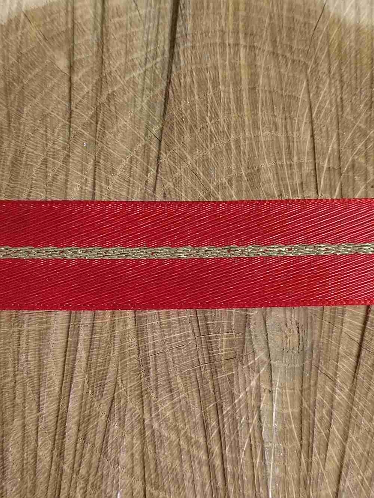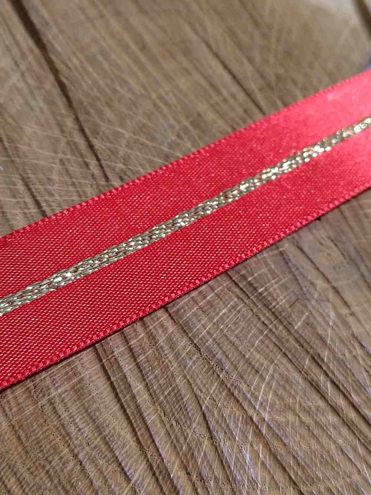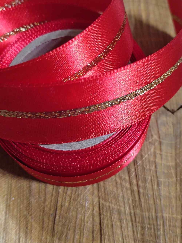 Atlasová stuha je pevná, velice kvalitní. Je oboustranná, jejím středem se vine třpytivý lurexový proužek.