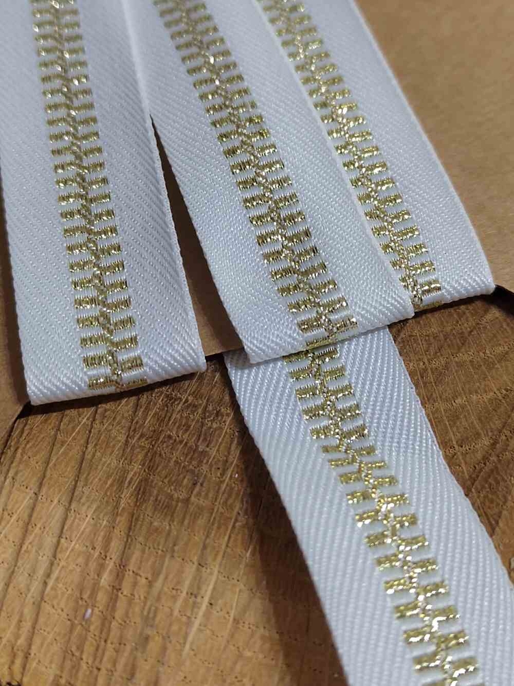 Lampas s vetkaným lurexem vytváří skvělou optickou iluzi zipu. Je oboustranný a velice pevný.