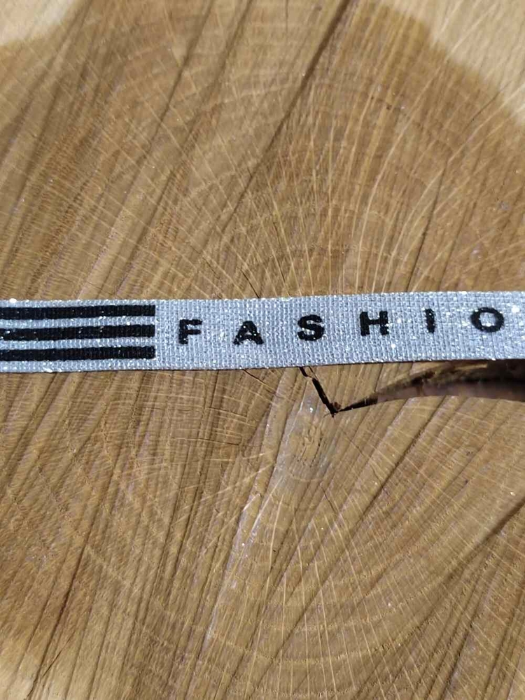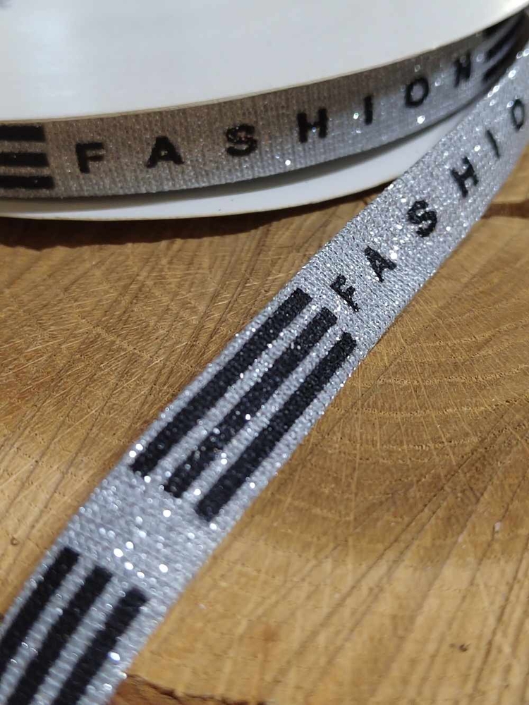 Lurexový lampas s nápisem Fashion stylově dozdobí vaše oděvy. Je jednostranný, velice pevný. Je vhodný na kalhoty, mikiny nebo bundy. Využijete jej i k lemování oblečení jako jsou sukně, saka, halenky i šaty. Vynikne také na doplňcích jako jsou čepice, tašky apod.