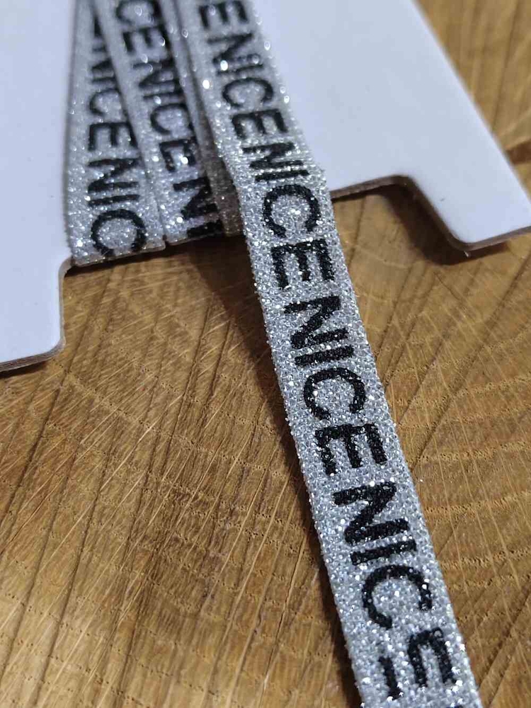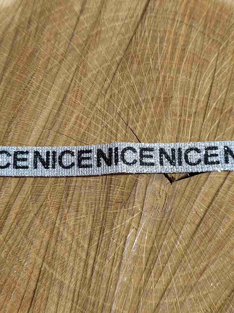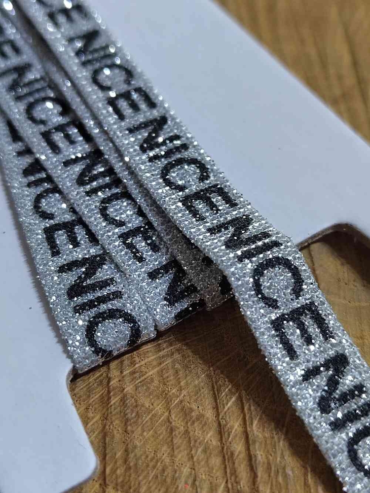 Lurexový lampas s nápisem Nice stylově dozdobí vaše oděvy. Je jednostranný, velice pevný.