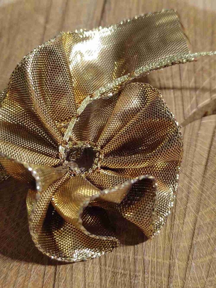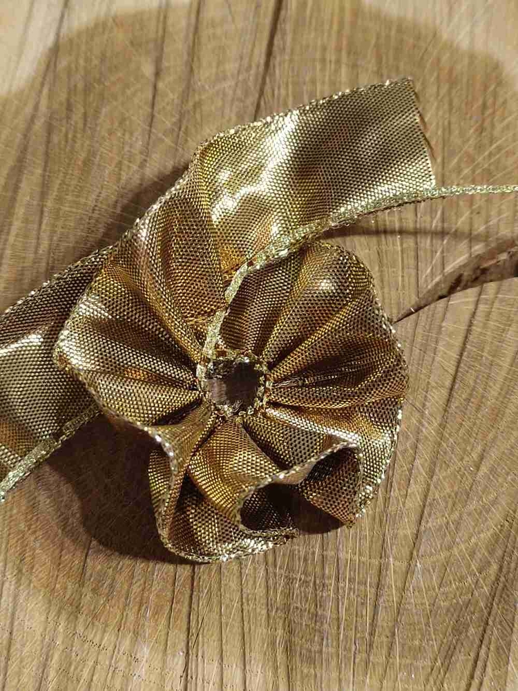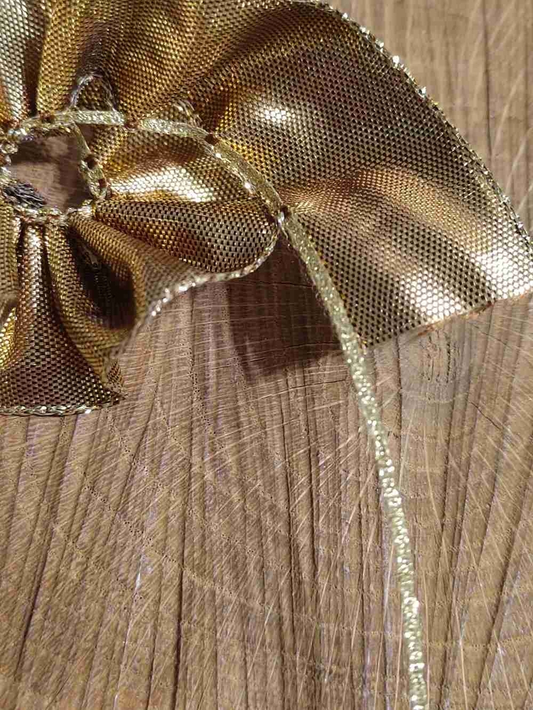 Sváteční lámová stuha vás nadchne svým vysokým metalickým leskem. Je oboustranná. [Na jednom okraji má stahovací stužku, druhý okraj je vyztužený silonem. Díky těmto vychytávkám se dá stuha zajímavě řasit, dají se z ní rychle vyrobit nařasené květy a rozety s pěkným okrajem.]